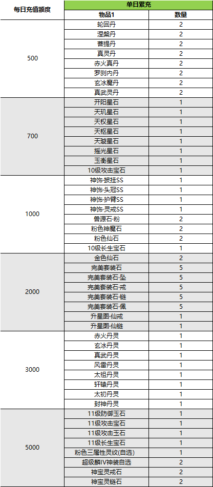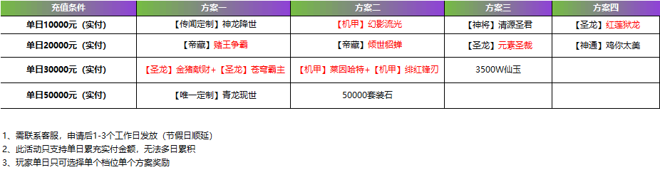 单日累充充值(实付金额)返利,单日只能申请最高充值档位一次